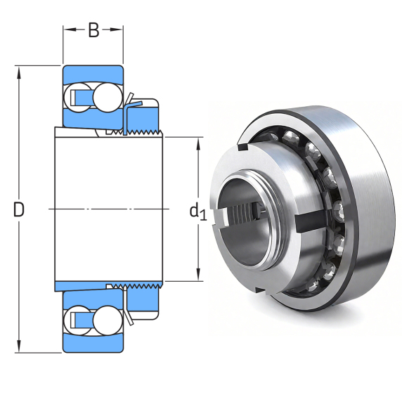 Self-aligning ball bearings have two rows of spherical rolling elements, with a common spherical raceway in the outer ring and two deep groove continuous raceways in the inner ring. They can be open or sealed. This type of bearing allows for relatively large angular displacement of the shaft relative to the housing, such as that caused by shaft deflection.