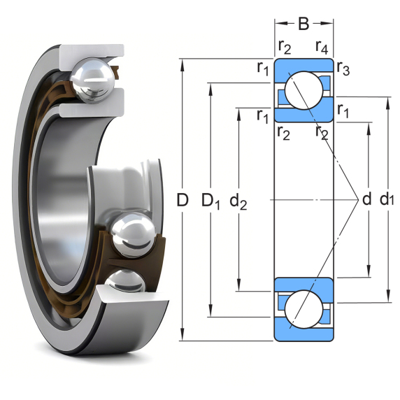 These bearings are designed to accommodate both radial and axial loads acting simultaneously, with the axial load applied in one direction only. They are suitable for high-speed and even very high-speed applications. Compared to deep groove ball bearings, they are better suited for supporting large axial forces in one direction.